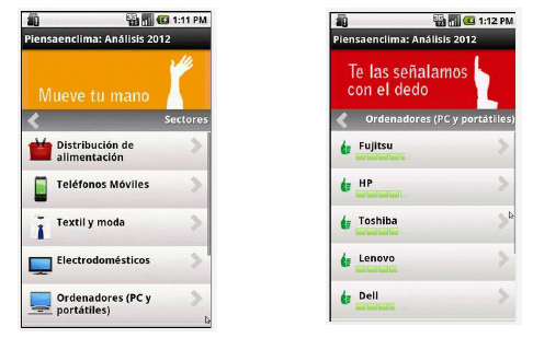 de la Fundación Ecodes. Consumo responsable frente al cambio climático. Te ofrece un ranking climático de las mayores empresas. Así podrás saber cuáles son las marcas que mejor actúan frente al cambio climático. Elige el sector y consulta los resultados: supermercados, teléfonos, ropa, electrodomésticos y ordenadores.