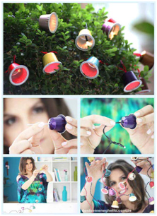 Usando chapas de botellas, piñas pequeñas o pajitas de colores: